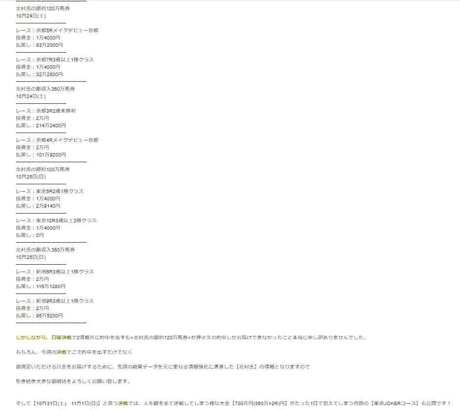 この週に実は管理人も優良サイトか悪質サイトか見定める為、有料情報に参加して自腹検証を行っておりましたのでその報告も兼ねて衝撃の結果をご報告致します。
