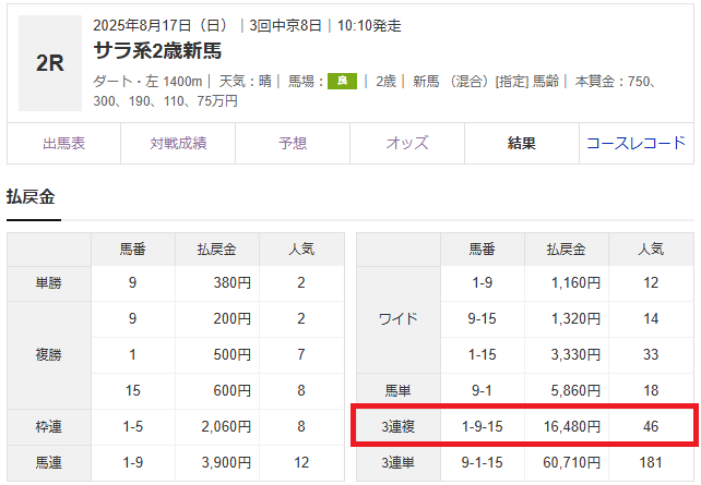 8月16日・新潟5レース 2歳新馬 芝1400m