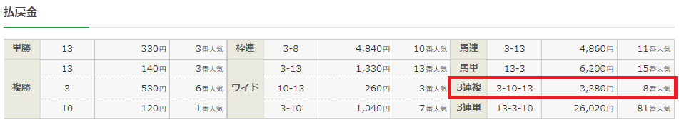 3-10-13で3連複的中!