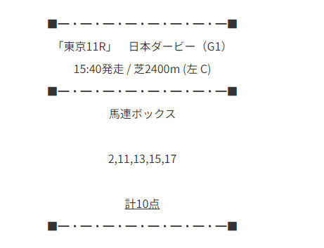 東京競馬場11Rの日本ダービー(G1)の予想になります。