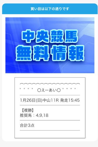 2日参加しましたが、無料情報は重賞の複勝の予想を出すようですね。