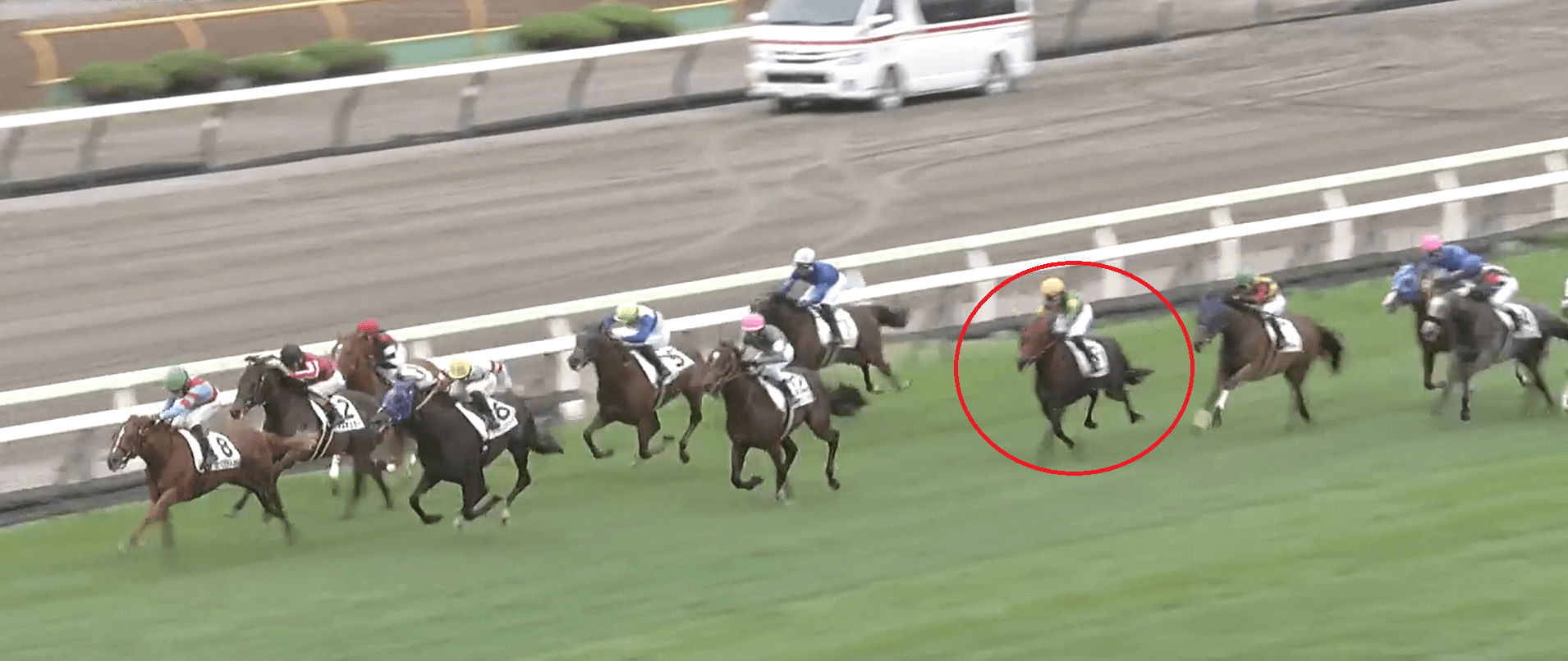 ■1番人気・4着■ 混戦模様の新馬戦で押し出される形で1番人気に支持されたが4着に敗退。しかし不利ある競馬のなかゴール前の脚は際立っており、ポテンシャルの高さは十分に感じられた。互角のスタートから中団前目を追走していたが、前を走る馬が下がり気味となり内から接近していた馬との距離がなく進路を失ったことで馬順を下げ、行き脚が鈍って最内を促しながらの追走となってしまう。4コーナー手前で最内から徐々に差を詰め直線に向くも、鞍上が何度も後ろを振り向きながら外に出すタイミングを計り、漸く残り150m付近で外に出してスパートを開始。先頭とは7馬身程離れていたが、ゴール前では他馬と異なる脚色で一気に猛追している。勝ち馬とは0.4秒差で3着馬とはクビ差まで詰めており、残り100mで5馬身程差を縮めラスト12.0-11.8秒と勝ち馬が加速ラップでゴールしたなかで猛追した末脚は見せ場十分であった。小回り1200m戦はやや忙しい印象であったが、レースを経験した事で追走がスムーズになれば、舞台を問わず次走で十分初勝利が期待できそうだ。