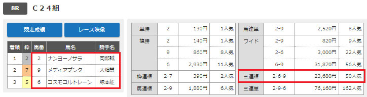 上位人気で買っていましたが手広く馬を選びつつもフォーメーションで上手く馬券を買っていたので16点で点数を抑えつつ馬券を当てることができました。