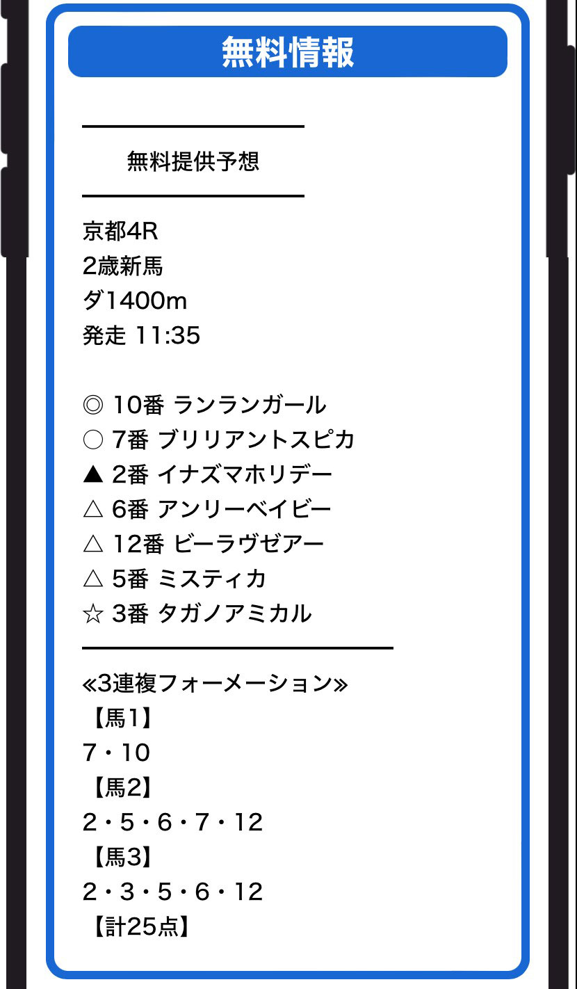 偶然かもしれませんが、今回も7番人気馬は消し予想でした。