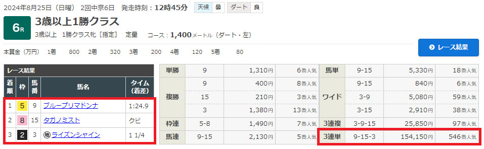 まずは8月24日 (土)に公開されていた買い目がこちらになります。