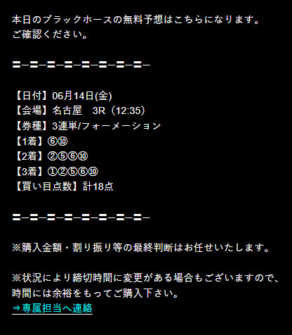 次の週の6月14日(金)に公開されていた買い目がこちらになります。