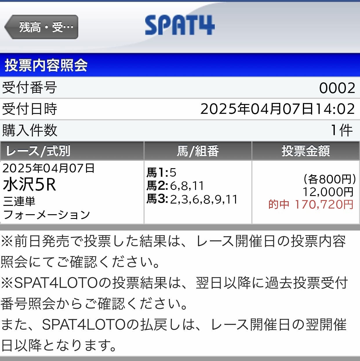 【速報】前日4月7日に公式LINE会員様限定無料情報が的中!