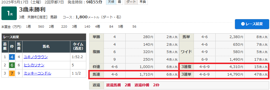 先週の京都1Rの予想は、、、
