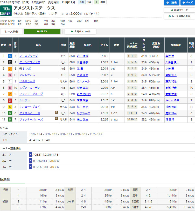 【検証レース:2/19 東京11R GⅢダイヤモンドステークス】