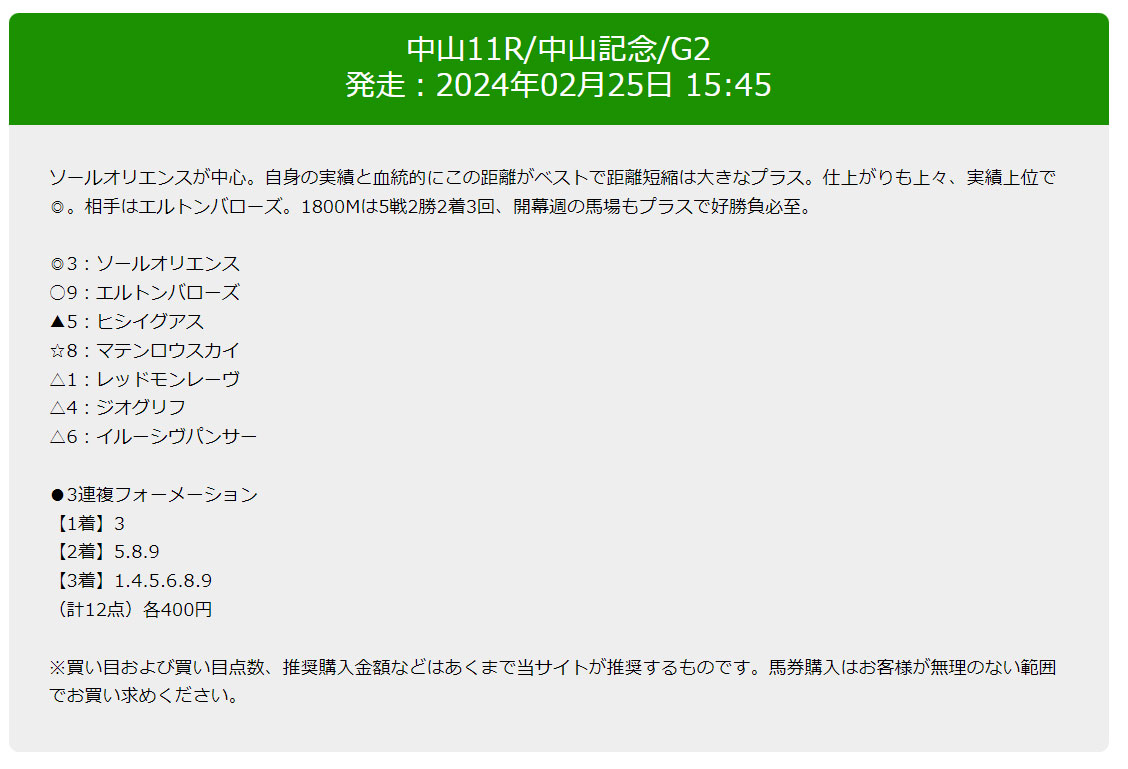 中山記念(G2)も小倉の平場のレースも見事に当てていますね。