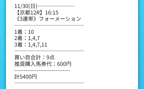 LINE限定無料情報で朝一から万馬券もらえました12-4-11で的中! 28,780円も付いたから朝一から14万3900的中ありがとうございました!