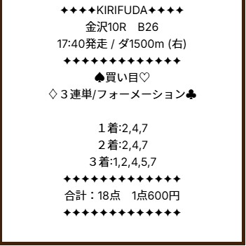日曜日の買い目も外れていましたね💦 どんまいっす