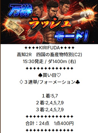 中央競馬より遥かに予想が難しい地方競馬で初の10万馬券取れました。 中央では何度かありますが、、、本題ですが高知競馬を3連単フォーメーション(馬券代9,600円)で1391.9倍的中→556,760円払い戻し。 スロット→中央競馬→競艇→競輪って今までやってきたけど、地方競馬が一番稼げるような気がする!