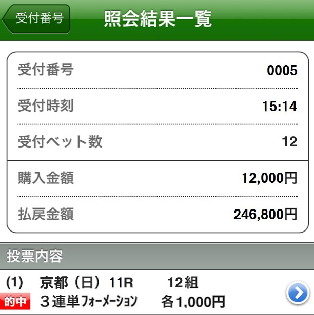 まじでエグイ的中貰えました!! リポートの管理人さんもLINE限定のガチ予想で京都大賞典3連複当ててたけど上位互換といってもおかしくない3連単予想でブチ当ててました、競馬好きな人とか競馬関係に携わってるとこんな大荒れレースさらっと当てるんかい?! 470万5500円ものちょー大金ゲットです! 追記、普段やらないけど土曜日キャリーオーバーしてたWIN5は馬蹄さんの予想に乗ったディープモンスターだけ当たりました(笑) 御見それいたしました、