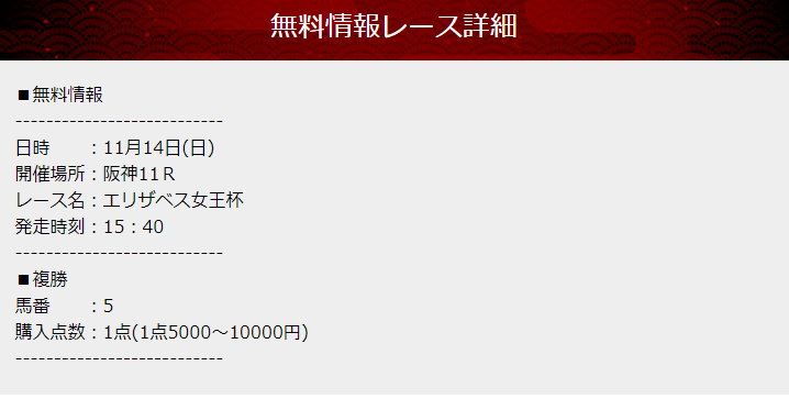 エリザベス女王杯、無料情報1点で的中ってやばない?3連単300万けっちゃくだぜ?!