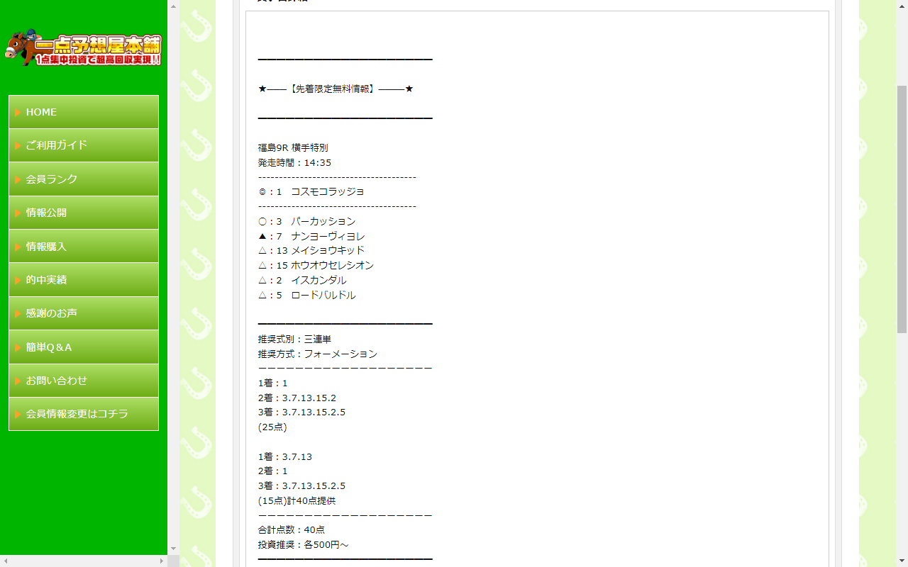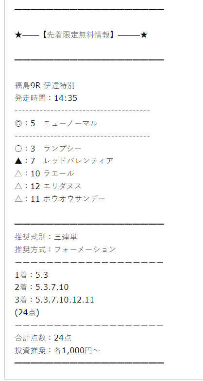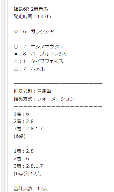 少点数買い目のご提供!