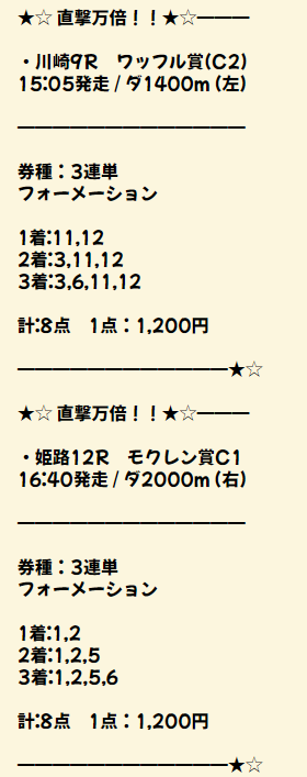 内の馬で予想してくれたけど悲しいことに外の馬で決まったわ笑