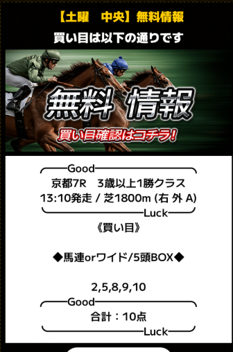 約束された万馬券の買い目が届く!